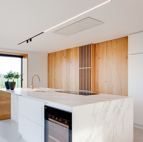 Do you have a cooking island and want to keep the view in your kitchen unobstructed? Then you can choose between a venting hob or a model that is fully integrated into the ceiling. With a hob with integrated extraction, only an elegant grid is visible, or an extraction tower even disappears completely into the hob when not in use. Ceiling extractor hoods, like the Novy Pureline, are perfectly integrated into the ceiling, making the extraction barely noticeable and giving your kitchen a sleek appearance as well.