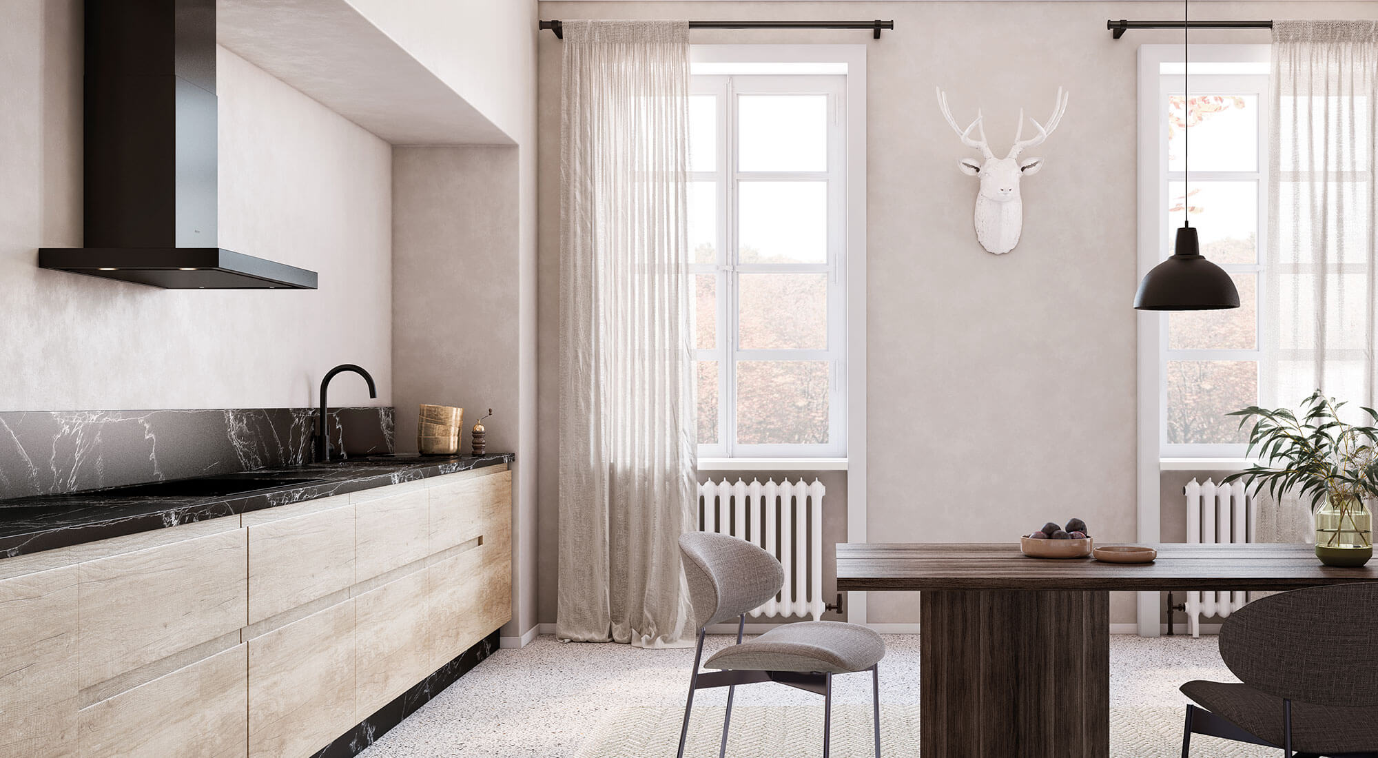 Wall-mounted cooker hoods can take on many different guises. From a classic look to a sleek design, and from eye-catching to extremely discreet. What you can always count on with Novy? That the extraction is extremely powerful and always whisper quiet. A wall-mounted extractor is placed against the wall or between the kitchen cabinets. Be inspired by our range and discover the perfect wall-mounted cooker hood for your kitchen at Novy.
