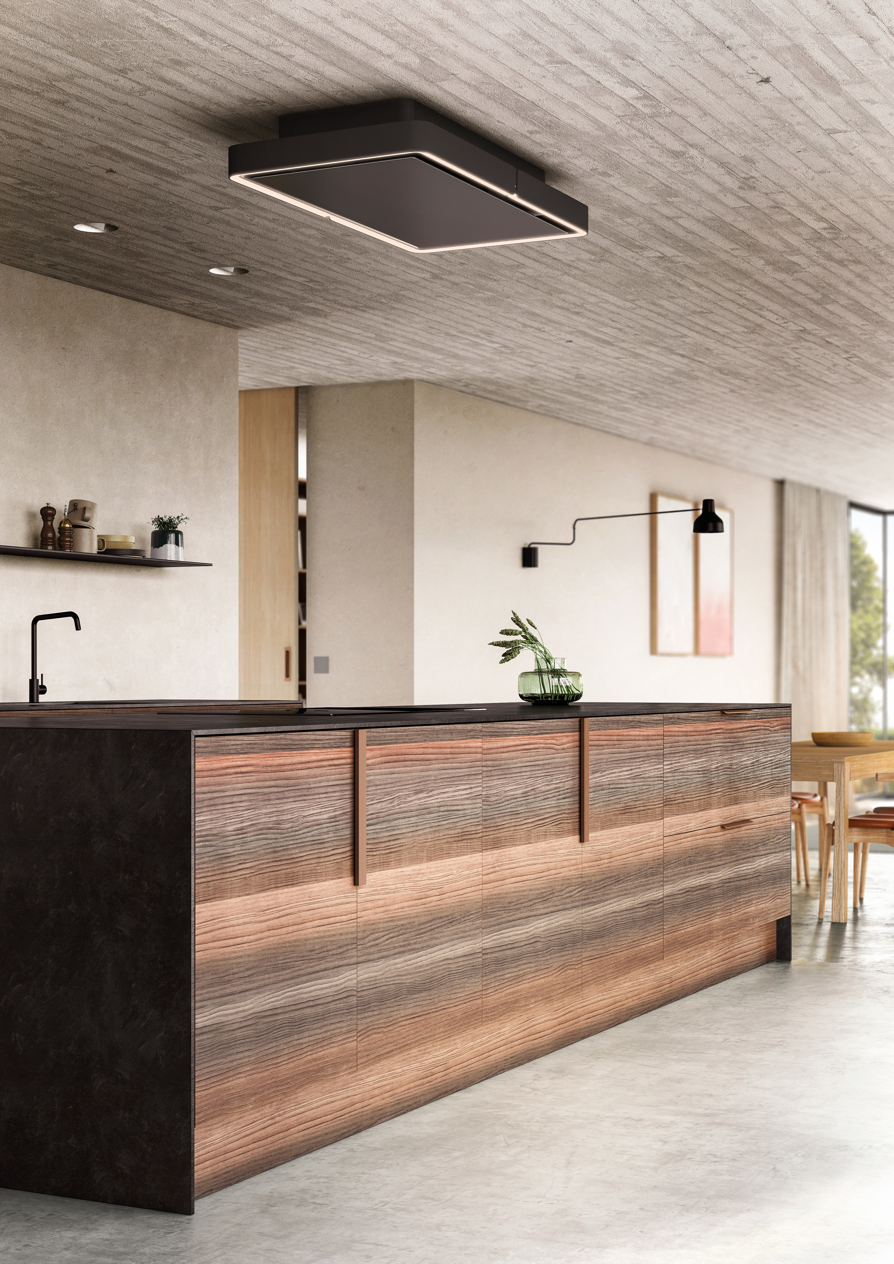 Die Pureline Deckenhaube kombiniert zeitlos elegantes Design mit neuester Abluft-Technologie. Der Dunstabzug wird direkt in die Decke oder in eine dekorative Nische eingebaut. Das sieht edel aus und ist sehr unauffällig. Die effiziente Absaugung und die durchdachten Beleuchtungsfunktionen sind eine Bereicherung für jede Küche.