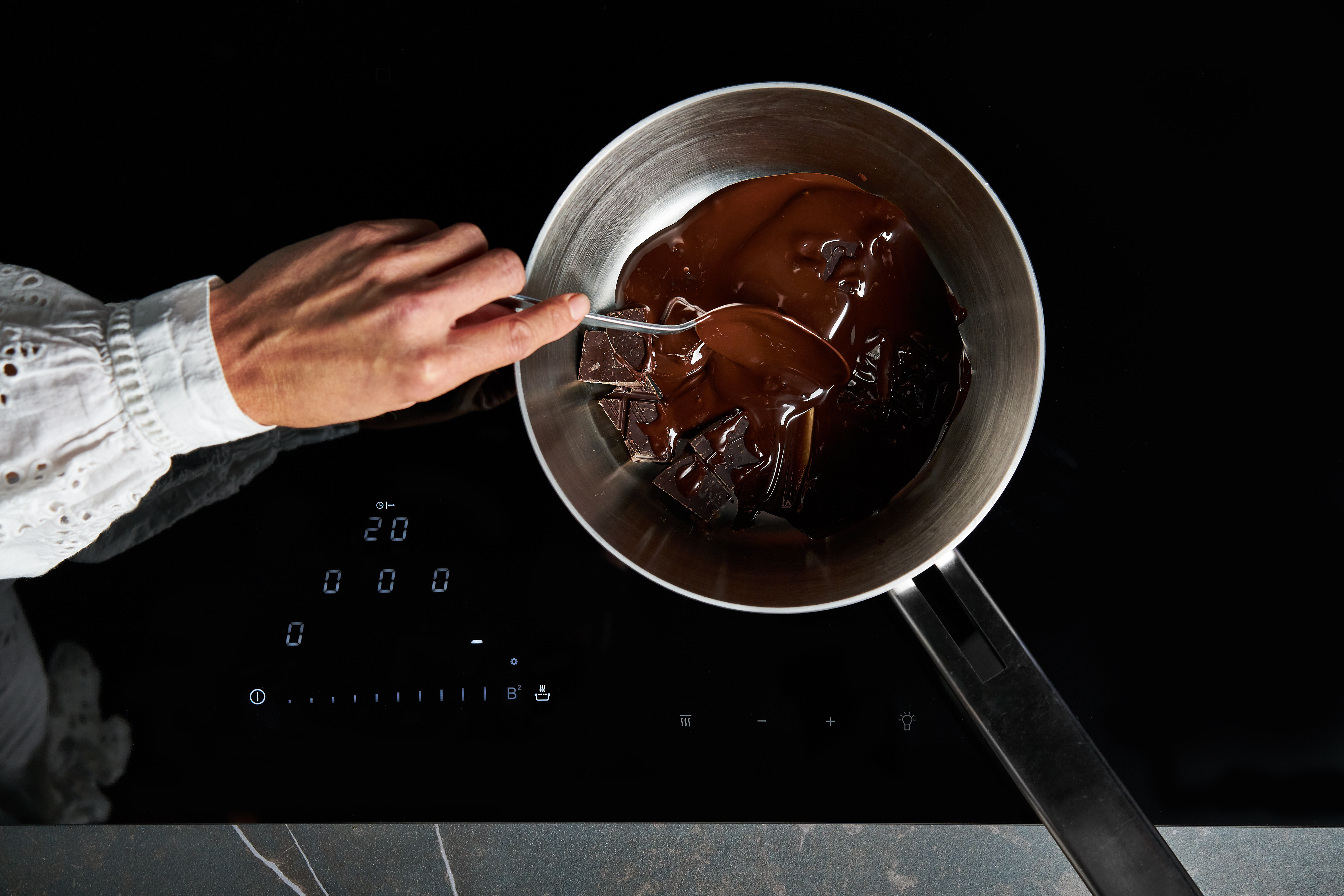 - Melt the chocolate au bain-marie with the keep-warm function of the Novy induction hotplate.