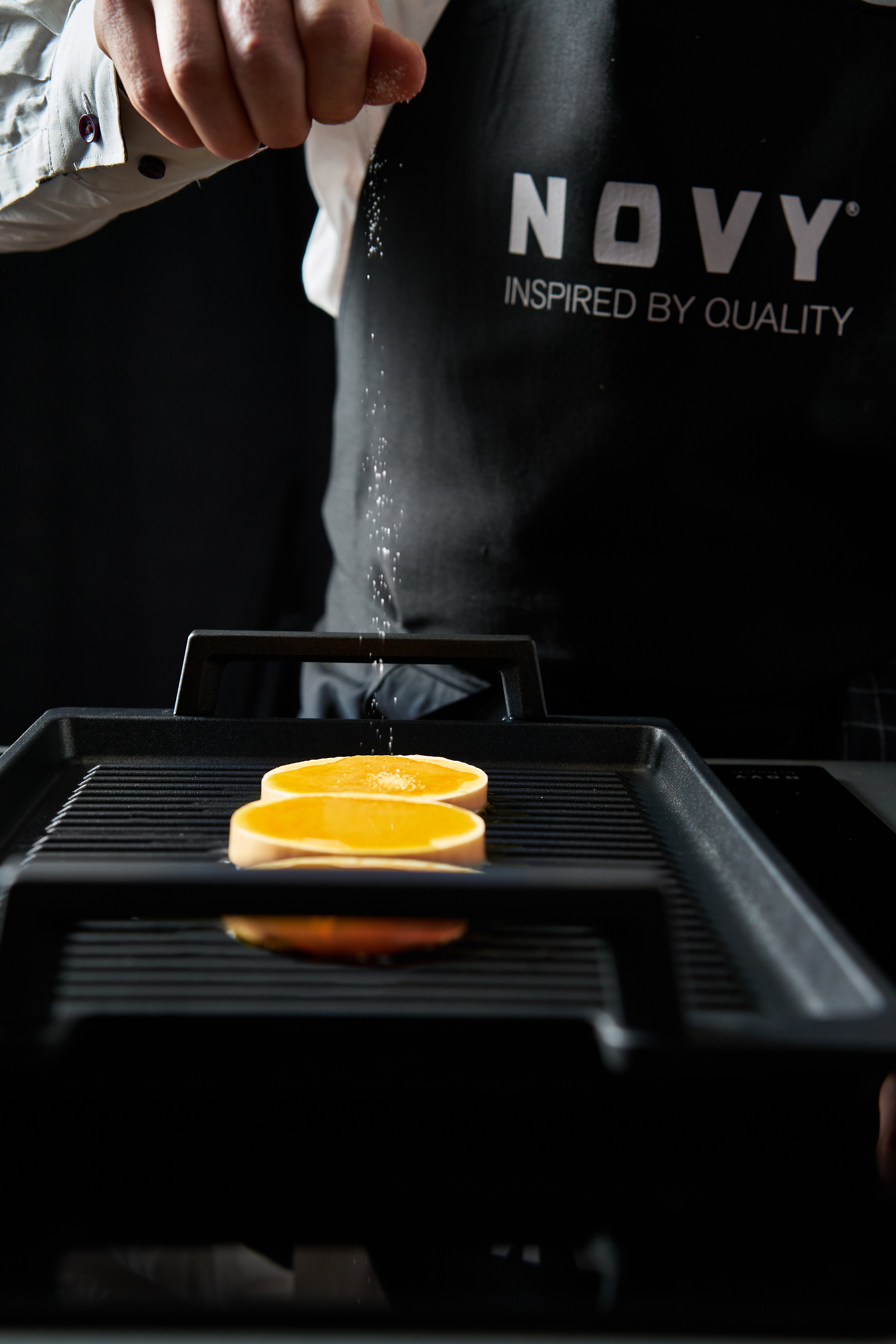Unusually simple, yet quite refined. You can say that about this open lasagna as well as about the kitchen in which it is prepared: with Cloud Black and an induction hotplate from Novy with InTouch function. Thanks to the InTouch function, communication between the hob and extractor is flawless. The keep-warm function keeps your pumpkin puree warm while the spinach is stewed. Time to serve? Then adjust the lighting, so that Cloud Black radiates a pleasant mood light in the background.