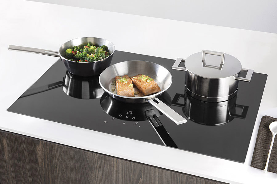 There’s a wide range of induction cooktops with either a ventilation tower at the back or a subtle integration in the center of the cooktop.