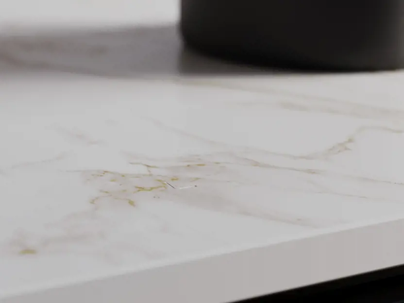 The multifunctional worktop optimizes your kitchen space. Whether you're cooking, working or dining, it adapts effortlessly. The scratch- and stain-resistant Dekton surface makes cleaning easy.